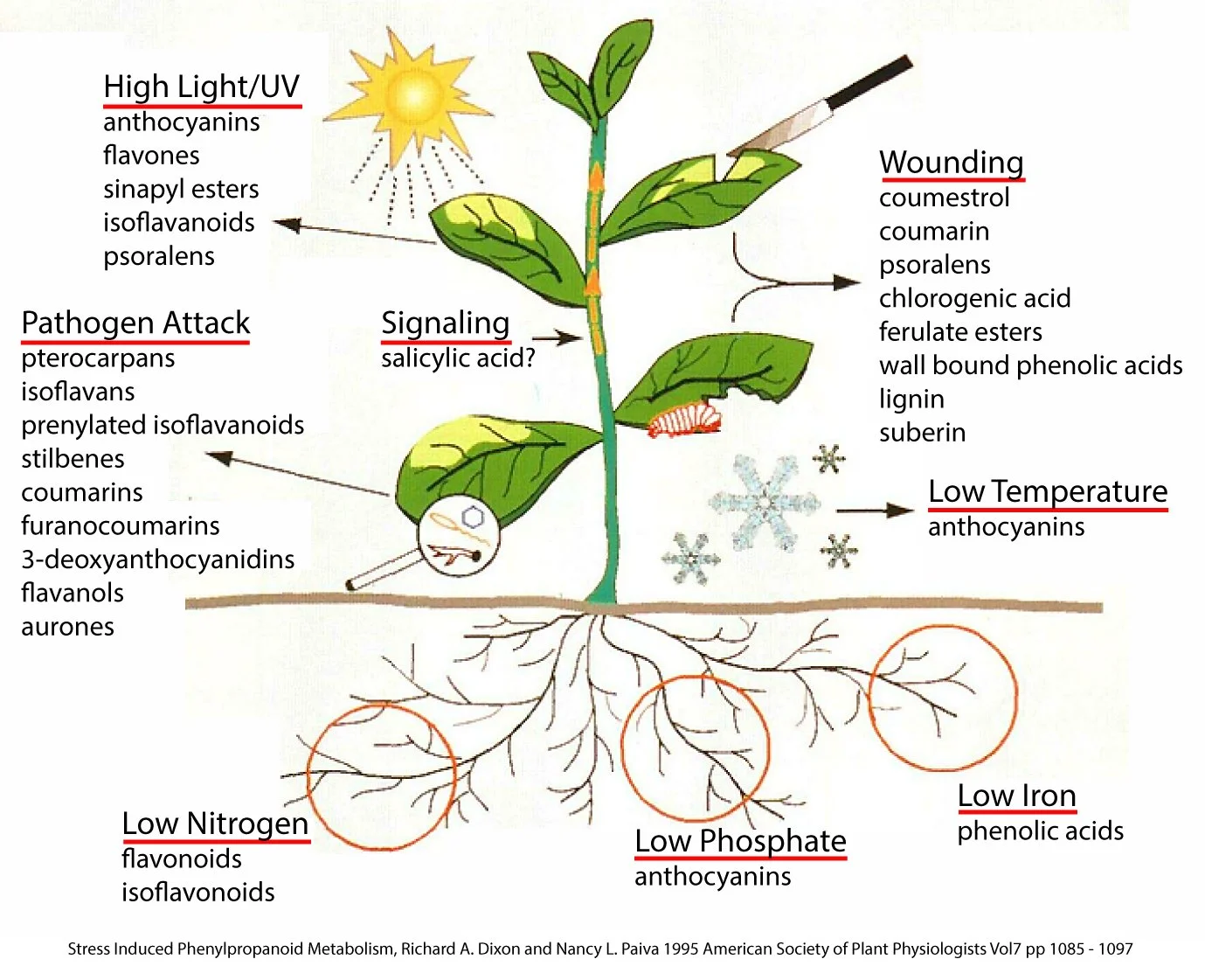 The plant responds by turning up the phenylpropanoid pathway - strengthening its natural repair growth and defence system.