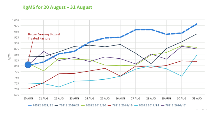 Waikato dairy cows grazing on Biozest treated pasture produced 8.5% more milk solids and 12.2% more fat per litre.